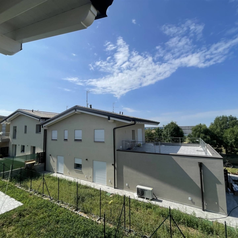 Abbiamo disponibilita’ di appartamenti al piano terra composti da un soggiorno ampio con cucina a vista, tre camere matrimoniali e servizio. Giardino privato, grande portico esterno fronte zona giorno. Garage privato ampio al piano terra. Ogni unita’ ha tecnologie innovative di costruzione e risparmio energetico.Situata in una nuova lottizzazione , vicino alla scuole e a tutti i servizi .
