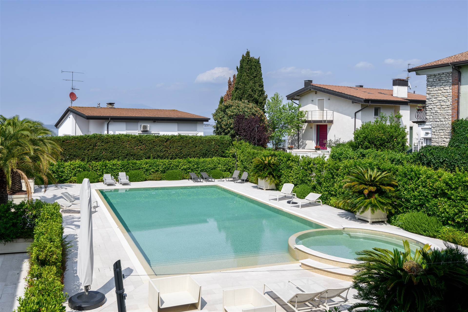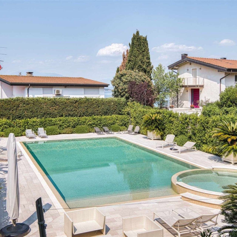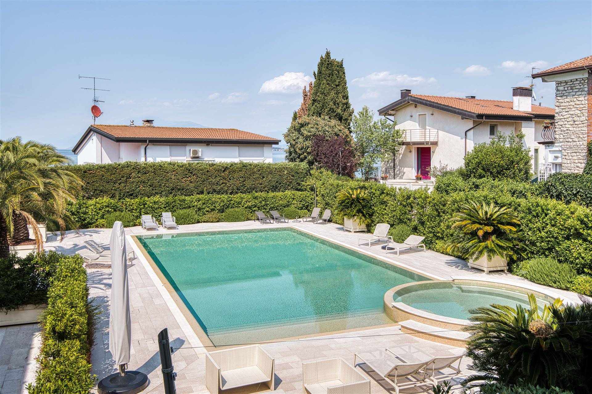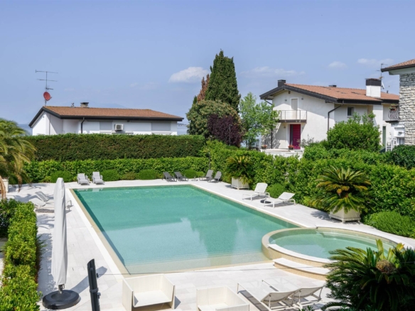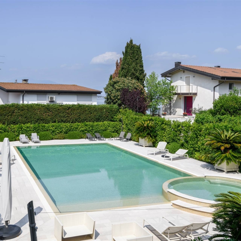 Strategicamente ubicata rispetto al centro cittadino della nota località lacustre bresciana, a un passo dai principali centri turistici e culturali della zona del Garda, la dimora si compone di sole cinque unità abitative immerse in un rigoglioso parco curato che ospita un’elegante piscina riscaldata con idromassaggio .