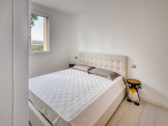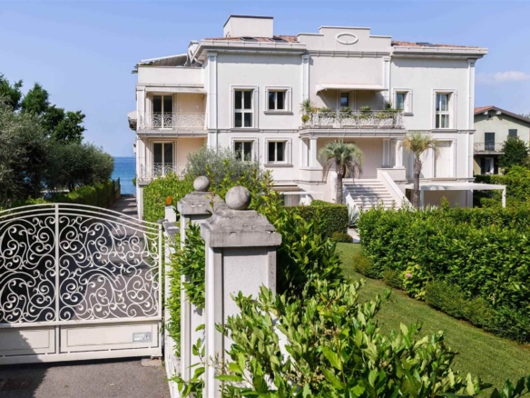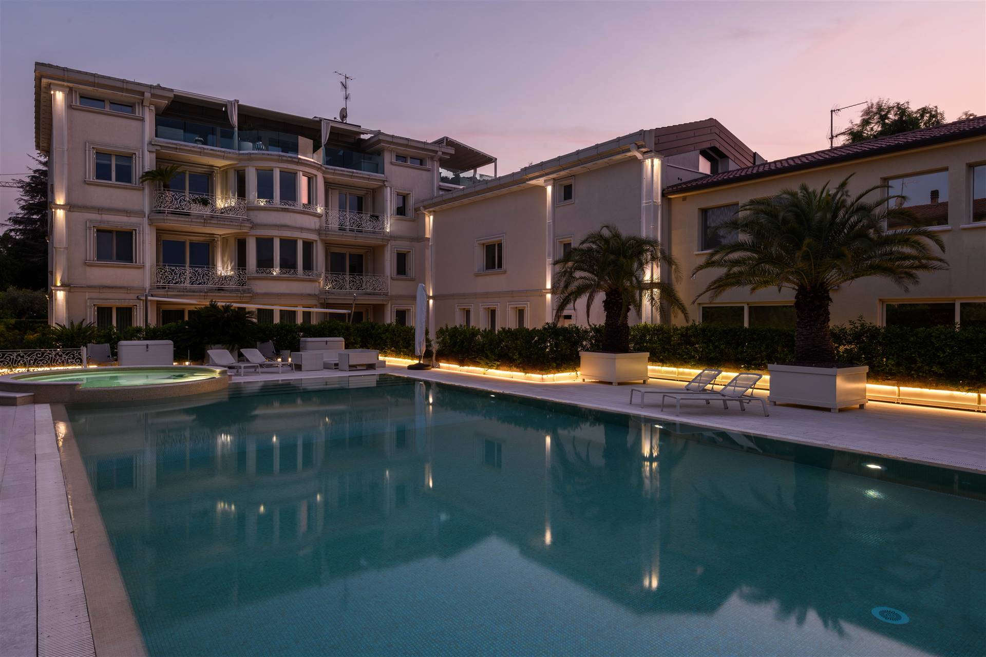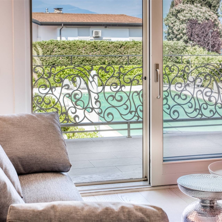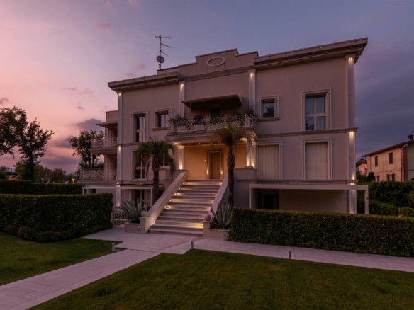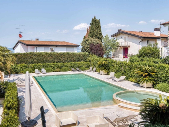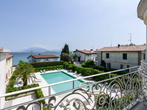 Strategicamente ubicata rispetto al centro cittadino della nota località lacustre bresciana, a un passo dai principali centri turistici e culturali della zona del Garda, la dimora si compone di sole cinque unità abitative immerse in un rigoglioso parco curato che ospita un’elegante piscina riscaldata con idromassaggio .