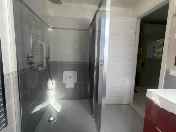 L’unità è dotata di un sistema di climatizzazione per garantire un clima ideale in ogni stagione. L’accesso all’appartamento avviene tramite un ingresso condominiale curato e dotato di ascensore, che facilita gli spostamenti.