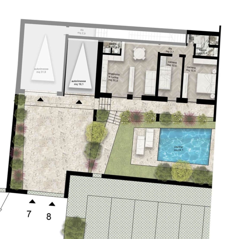 L’immobile si trova all’ultimo piano, offrendo una vista panoramica e un’eccellente privacy. Il balconi e le terrazze spaziosi sono ideali per godere di piacevoli momenti all’aperto, mentre il giardino/resede rappresenta uno spazio versatile per attività all’aperto o semplicemente per rilassarsi. Completano la proprietà un box/garage doppio e un ingresso indipendente, che aggiungono ulteriore valore e comodità.e piscina condivisa con le poche unita.