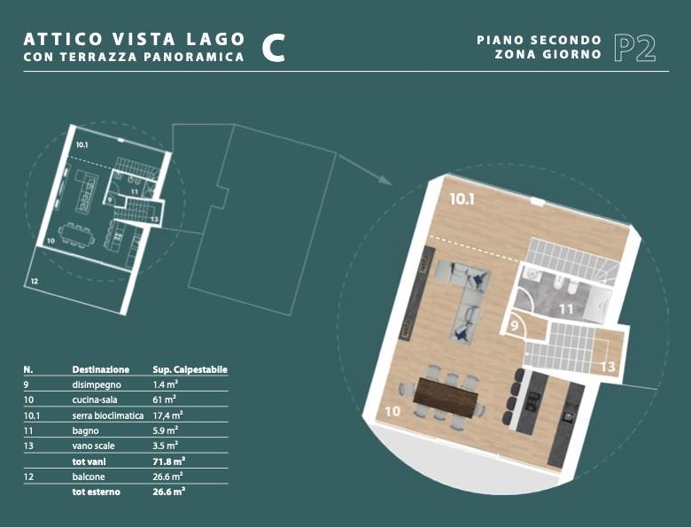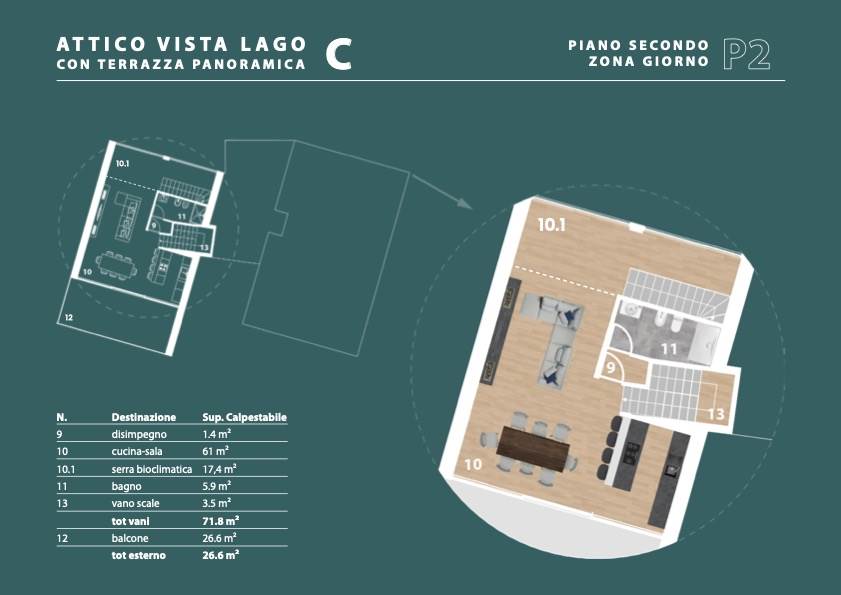 Attico in duplex con solarium vista lago !!!