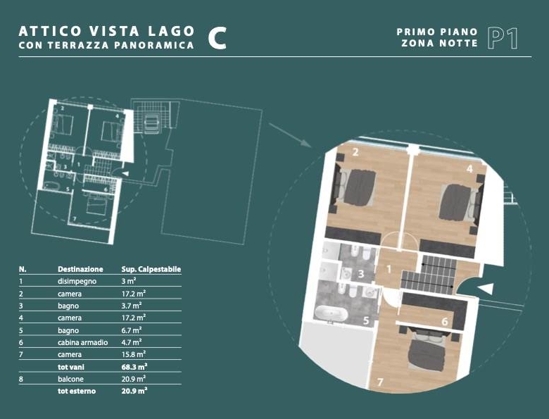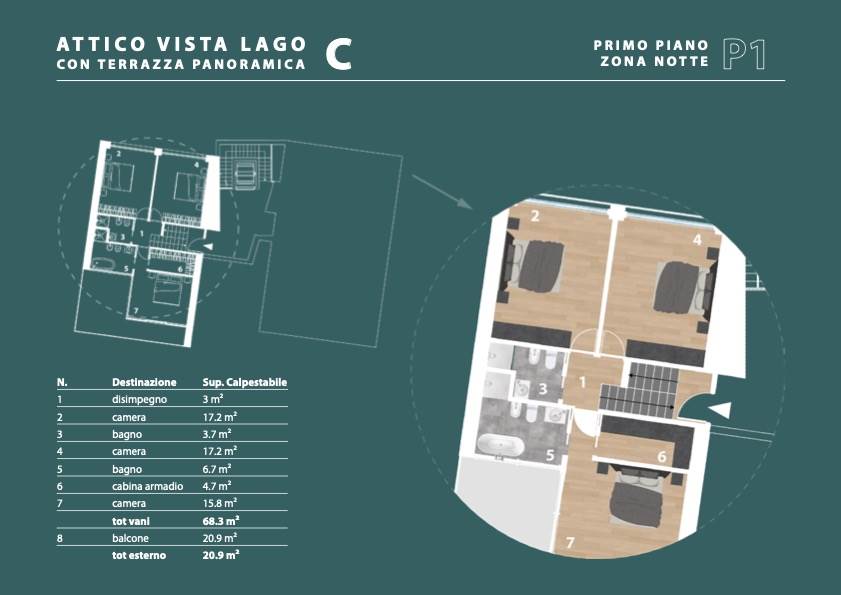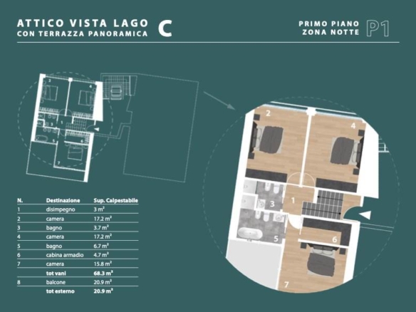 Al piano primo, potrai apprezzare un’ulteriore terrazza di 23 mq, che offre una vista panoramica mozzafiato, e un’area notte ben separata composta da tre camere matrimoniali e due bagno di cui uno in suite. La classe energetica A+ garantisce un’ottima efficienza energetica, mentre il riscaldamento autonomo ti permetterà di gestire al meglio i consumi.