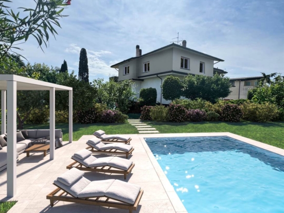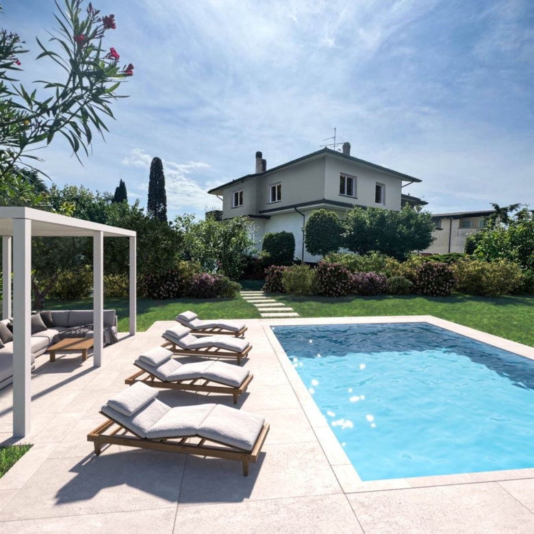 Vendiamo attico in villa con vista lago, disposto al piano primo ed ultimo, l’attico ha un’ingresso pedonale indipendente e gode di una vista panoramica del lago. L’immobile è fase di ristrutturazione e la consegna è prevista in 6 mesi ; comprenderà un ampio soggiorno caratterizzato da grandi vetrate scorrevoli rivolte verso il lago e la terrazza, quattro camere da letto e tre bagni il tutto condito da finiture di prestigio di alto livello. A piano terra sempre di proprietà esclusiva, troviamo un giardino di 500mq. con piscina privata, zona relax barbecue, un parcheggio coperto per tre posti auto e un garage. Ad oggi c’è la possibilità di personalizzare le finiture interne .