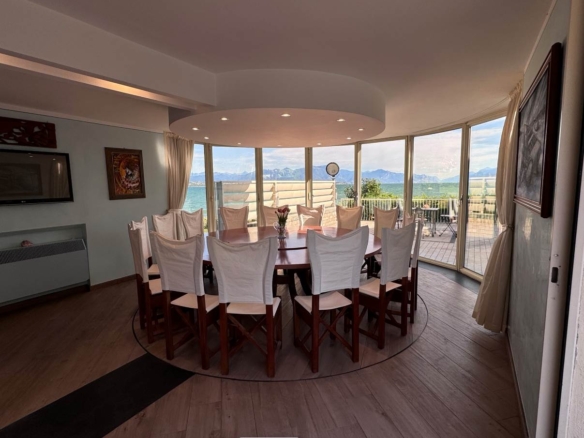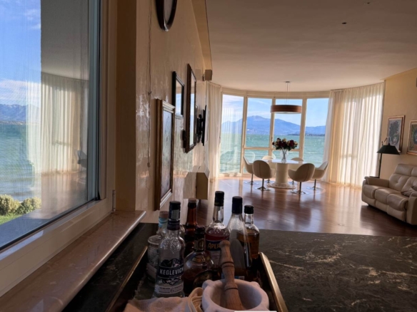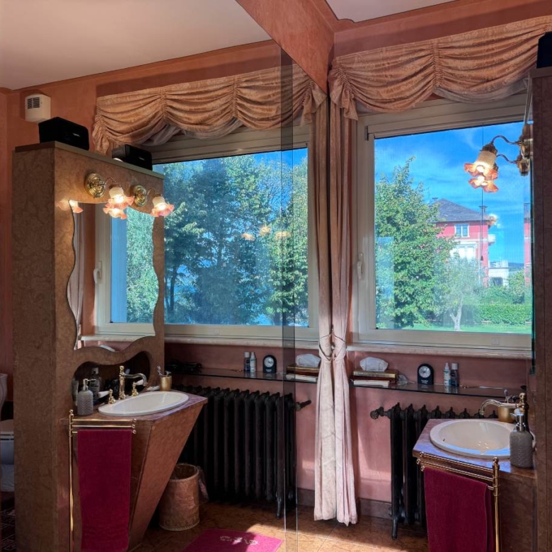 Al piano superiore troviamo un’altra zona living con grande vetrata vista lago e cucina attrezzata; allo stesso piano prosegue la zona notte con due camere da letto e bagno con vasca idromassaggio.