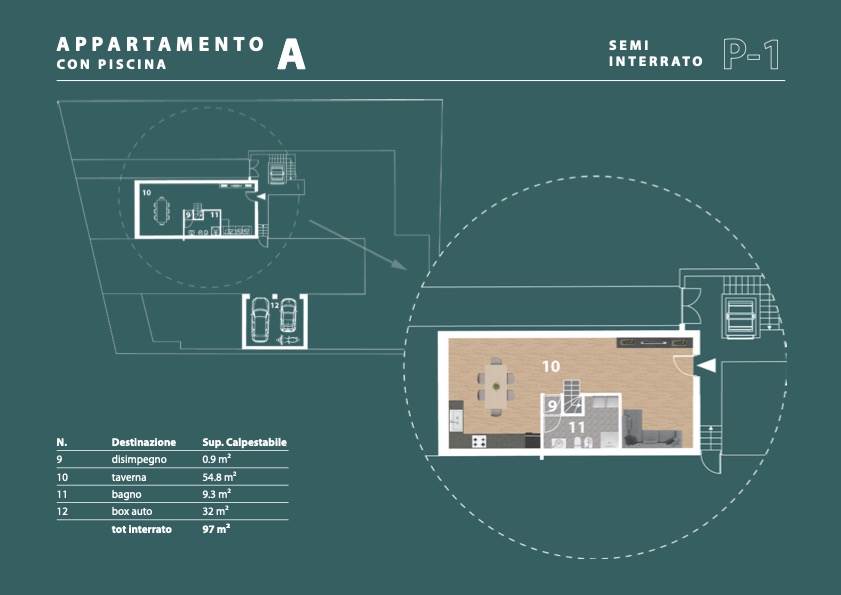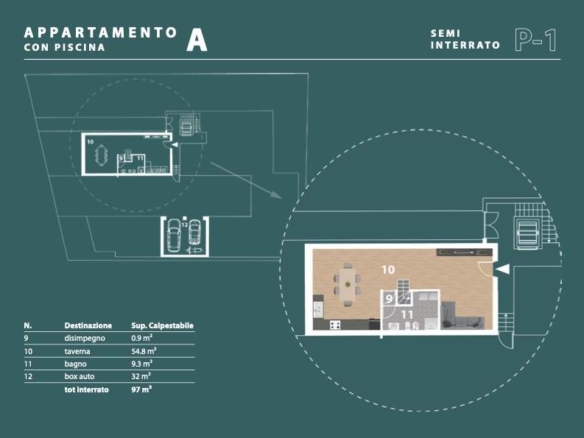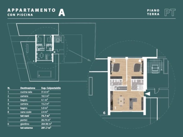 All’esterno, potrete godere di un portico/patio di 27 mq, ideale per pranzi all’aperto o momenti di relax, e di un giardino/risede di ben 270 mq, con piscina privata perfetto per chi ama la natura e desidera uno spazio verde privato. Inoltre, la proprietà include una taverna di 74 mq al piano seminterrato, offrendo ulteriori possibilità di utilizzo, e un box/garage di 36 mq al piano interrato, per una comoda gestione dei veicoli.
