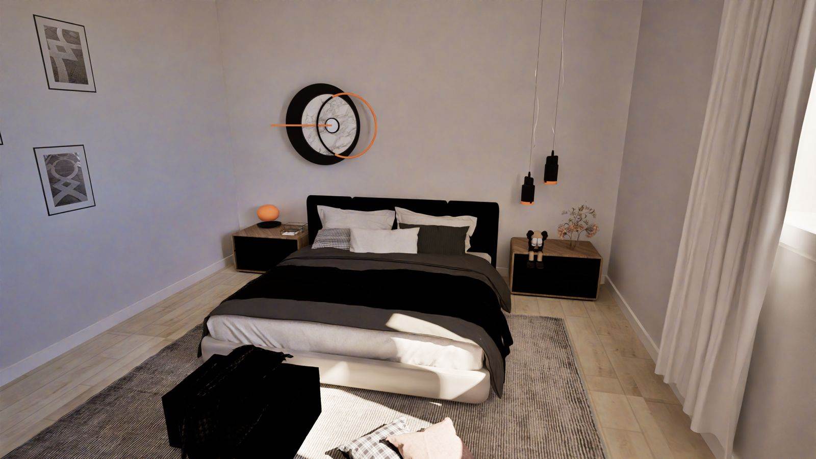 L’appartamento presenta un luminoso soggiorno doppio, dotato di condizionatore, perfetto per momenti di relax e convivialità. La cucina è un angolo cottura funzionale, ideale per preparare deliziosi pasti. Da qui si accede a una terrazza di 19 mq, uno spazio esterno perfetto per godere di piacevoli serate all’aperto.