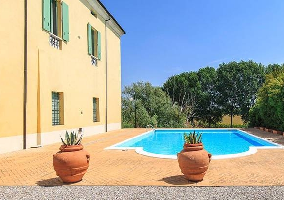 La villa dal grande impatto architettonico ha un’area di proprietà di circa mq.3.600,00 e si sviluppa su due paini di circa mq.500 ciascuno più un piano mansarda possibilmente recuperabile. Attualmente suddivisa in appartamenti si presta come prestigiosa casa di campagna o B&B di lusso. Affacciata su di un ansa del fiume, in dolce contesto paesaggistico la villa è stata completamente ristrutturata nel 2000, anno in cui è stata realizzata una grande piscina nel parco.