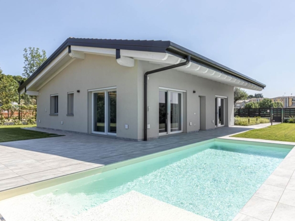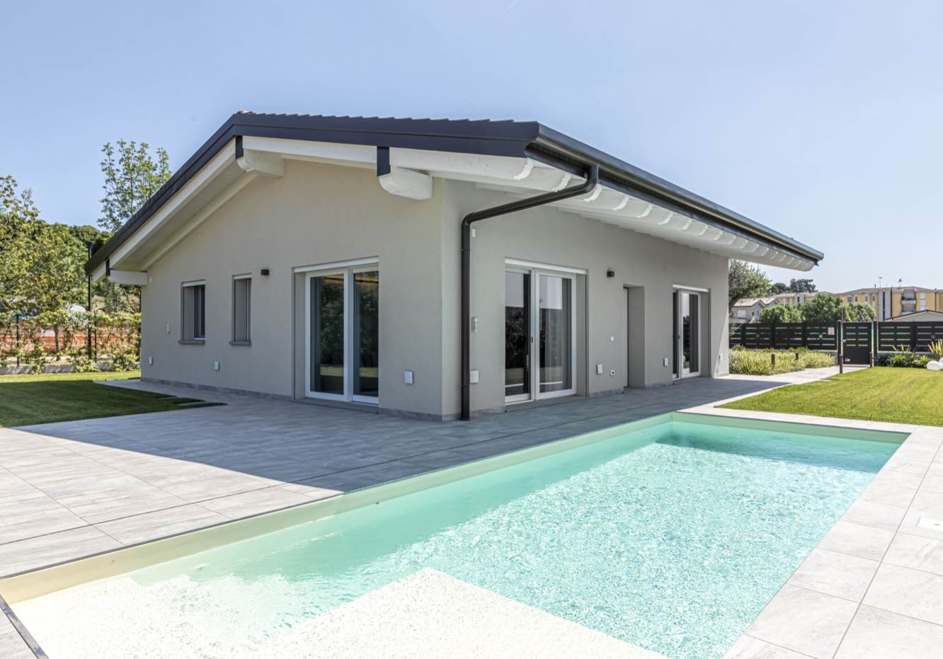 VILLA SINGOLA ECOSOSTENIBILE CLASSE A4 ,fortemente isolata , completamente elettrica, dotate di impianto fotovoltaico, 155mq netti utili villa 100 mq, garage 23 mq , portico 27 mq, con ampio giardino , fortemente isolata , nessuna spesa condominiale .
