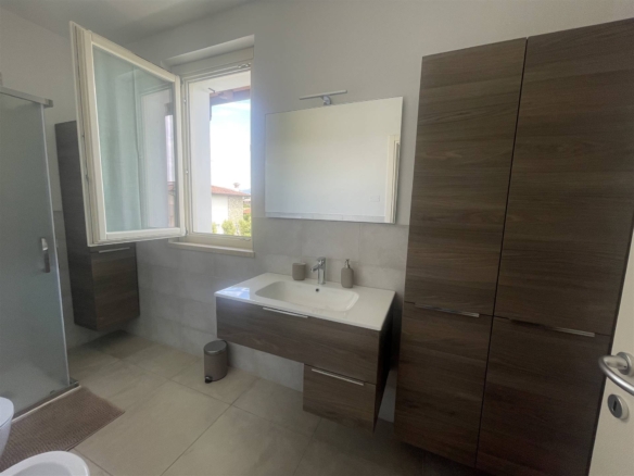 VILLA SINGOLA IN AFFITTO A MANERBA DEL GARDA , ESCLUSIVA PROPRIETA’ NUOVA COSTRUZIONE , con giardino esclusivo , e piccola piscina, grande soggiorno con la cucina separata abitabile, con vetrate con accesso al giardino e al porticato coperto , riscaldamento e rinfrescamento a pavimento , bagno di servizio zona giorno, arredata finemente a nuovo mai abitata , piano primo troviamo 3 camere da letto e due bagni , con acceso alla terrazza, piano inferiore troviamo un’ altra grande camera matrimoniale , lavanderia e un box per 4 auto.