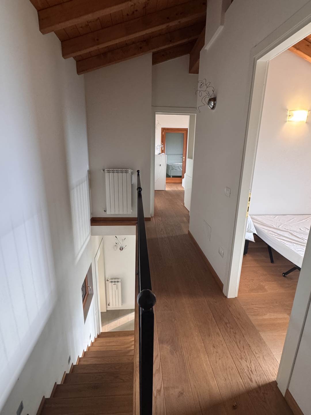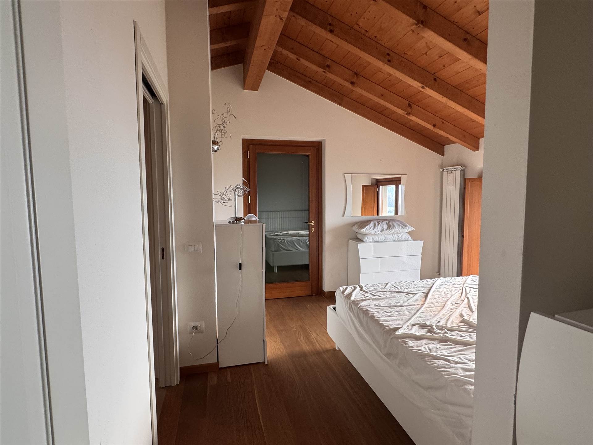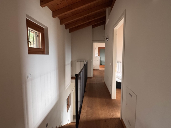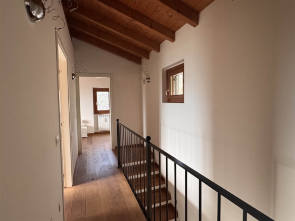 Tra le finiture ; pavimenti in cotto e parquet, travi in legno a vista .