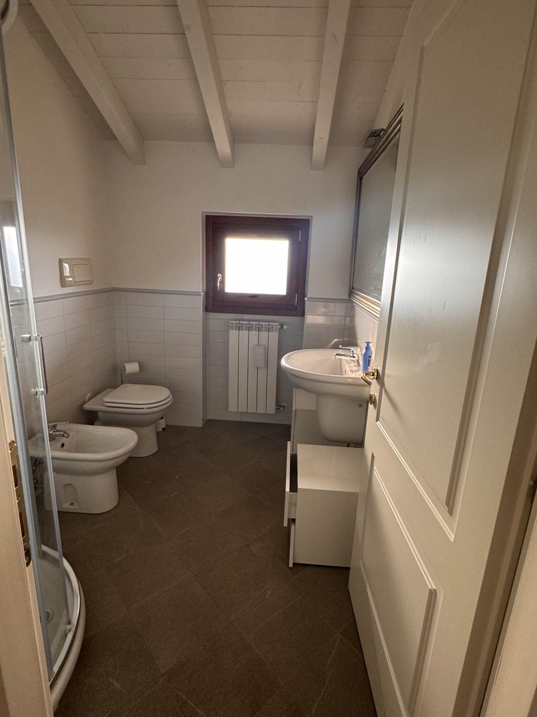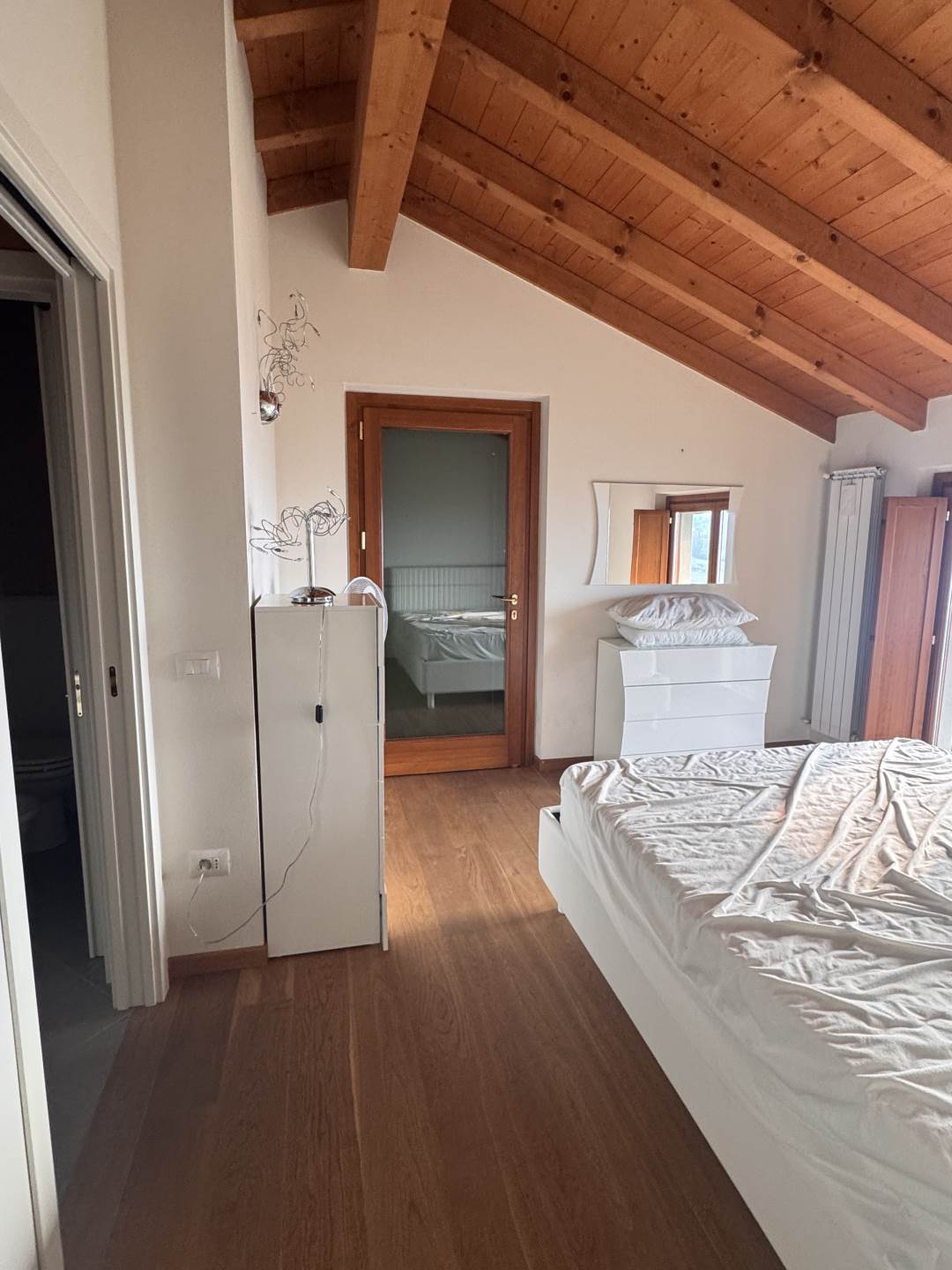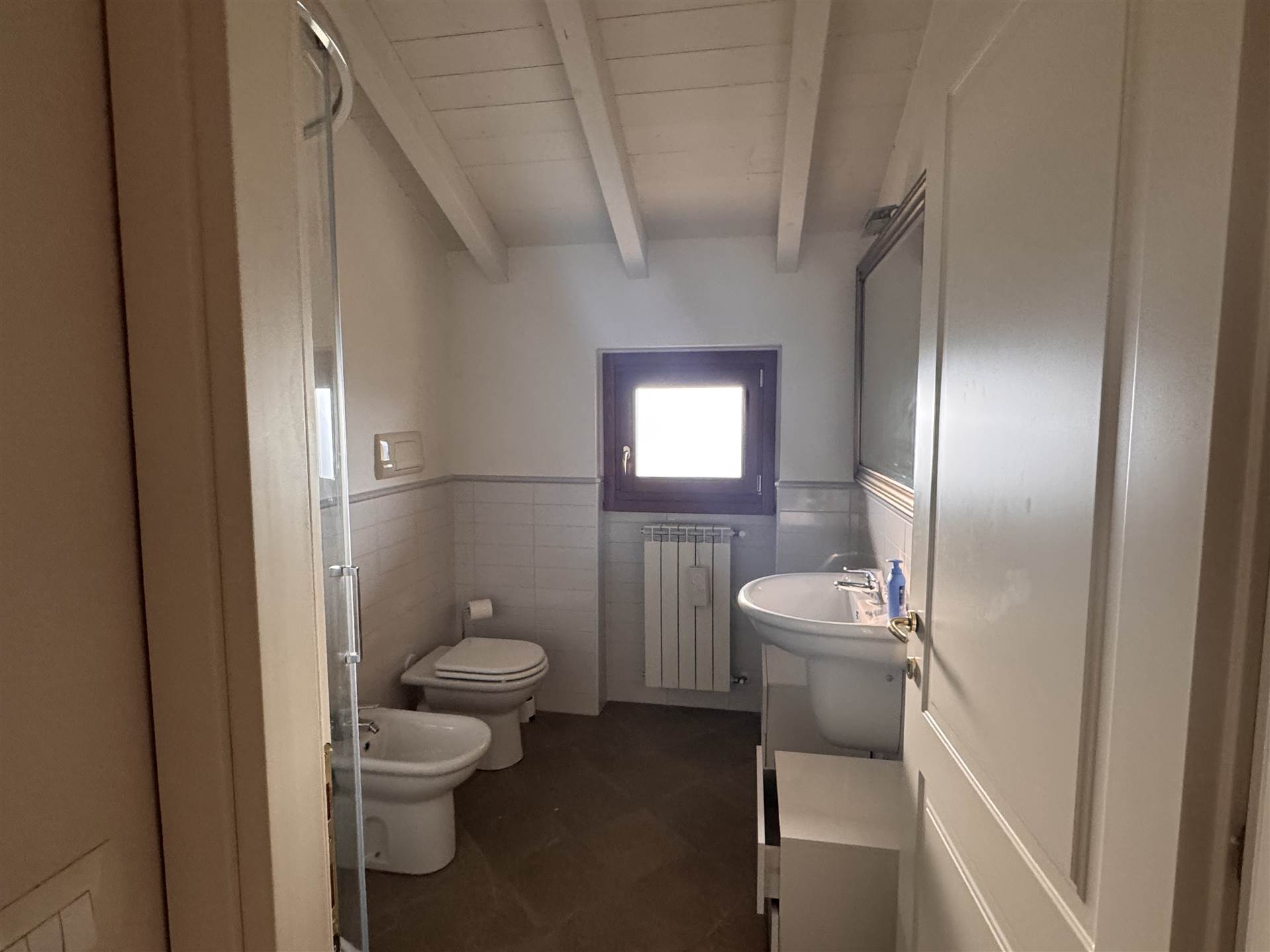 Tra le finiture ; pavimenti in cotto e parquet, travi in legno a vista .