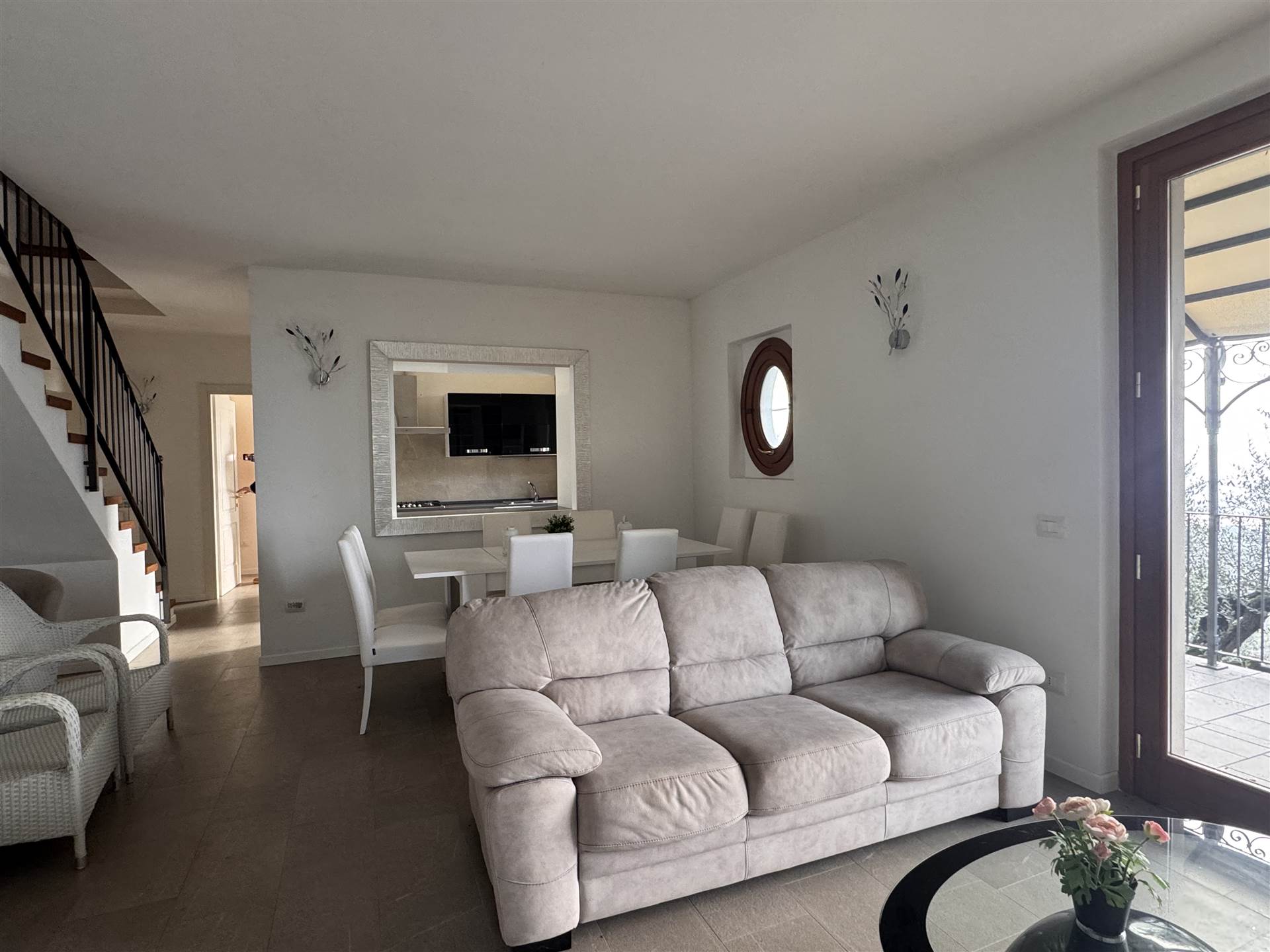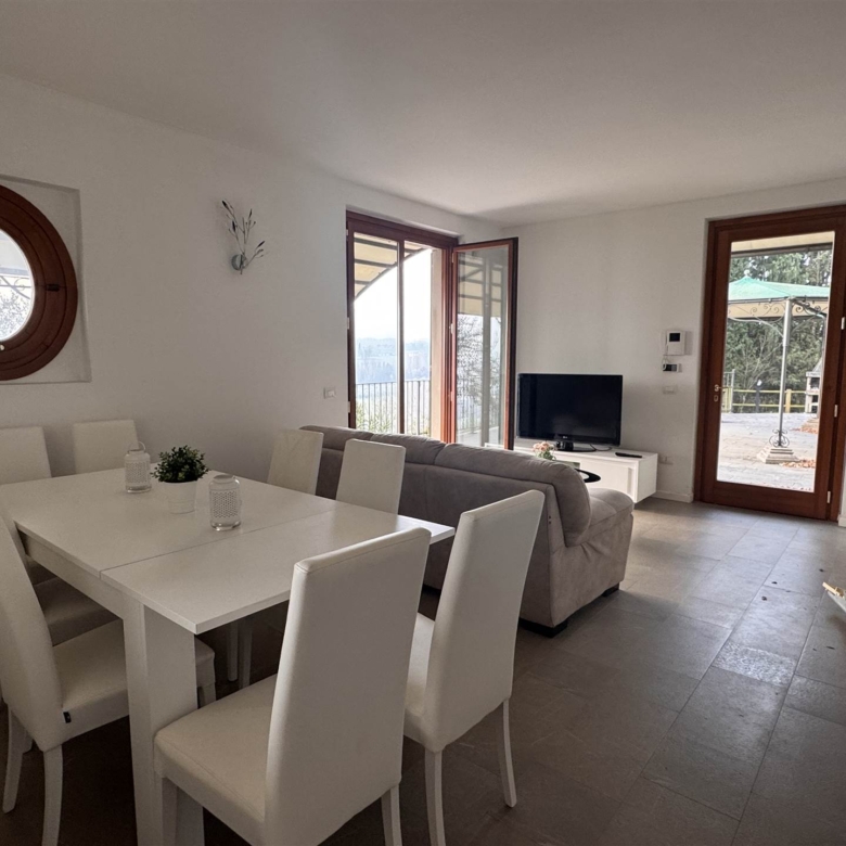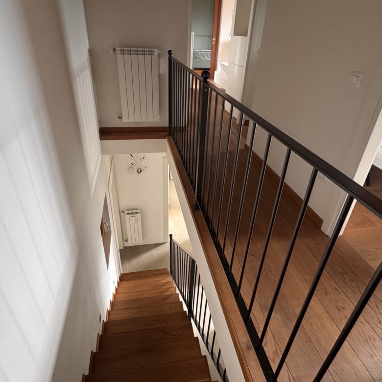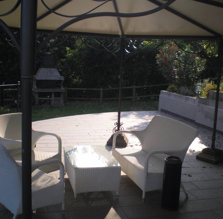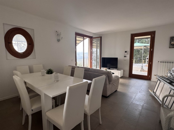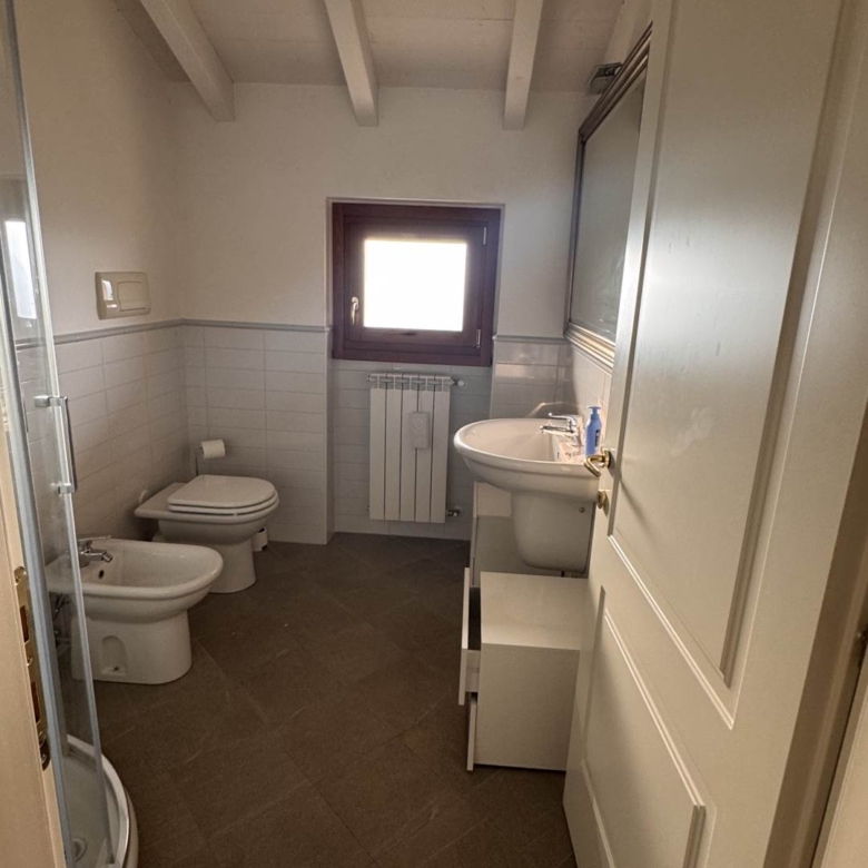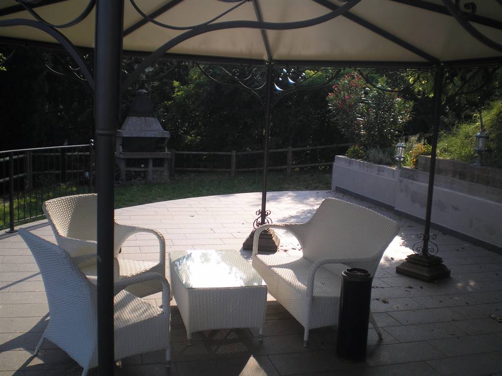 A piano terra si trova un soggiorno con porta finestra che accede alla zona gazebo e barbecue, una cucina, una camera , un bagno e un porticato. A piano primo tre camere di cui due matrimoniali, una singola, due bagni .