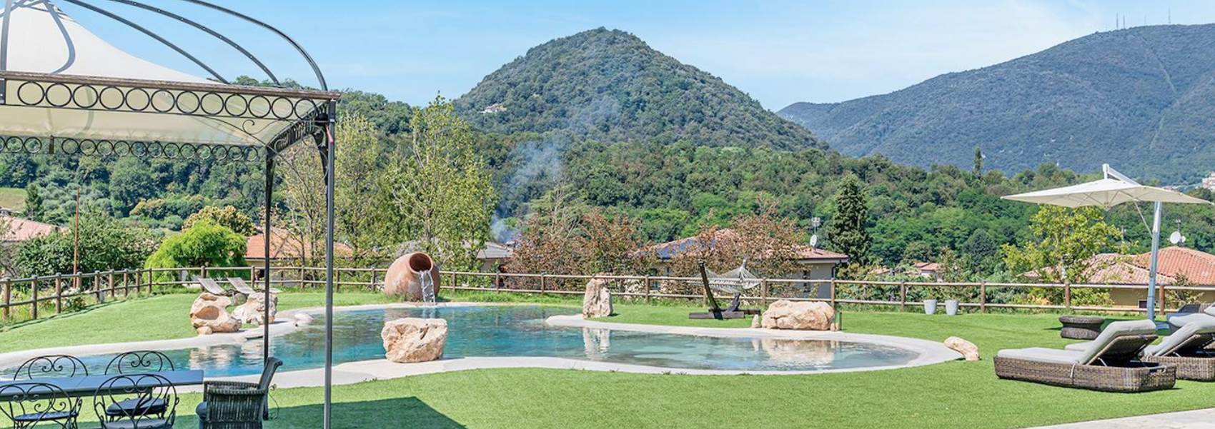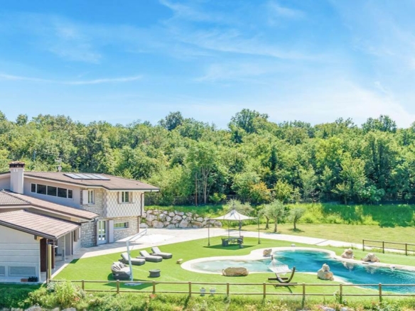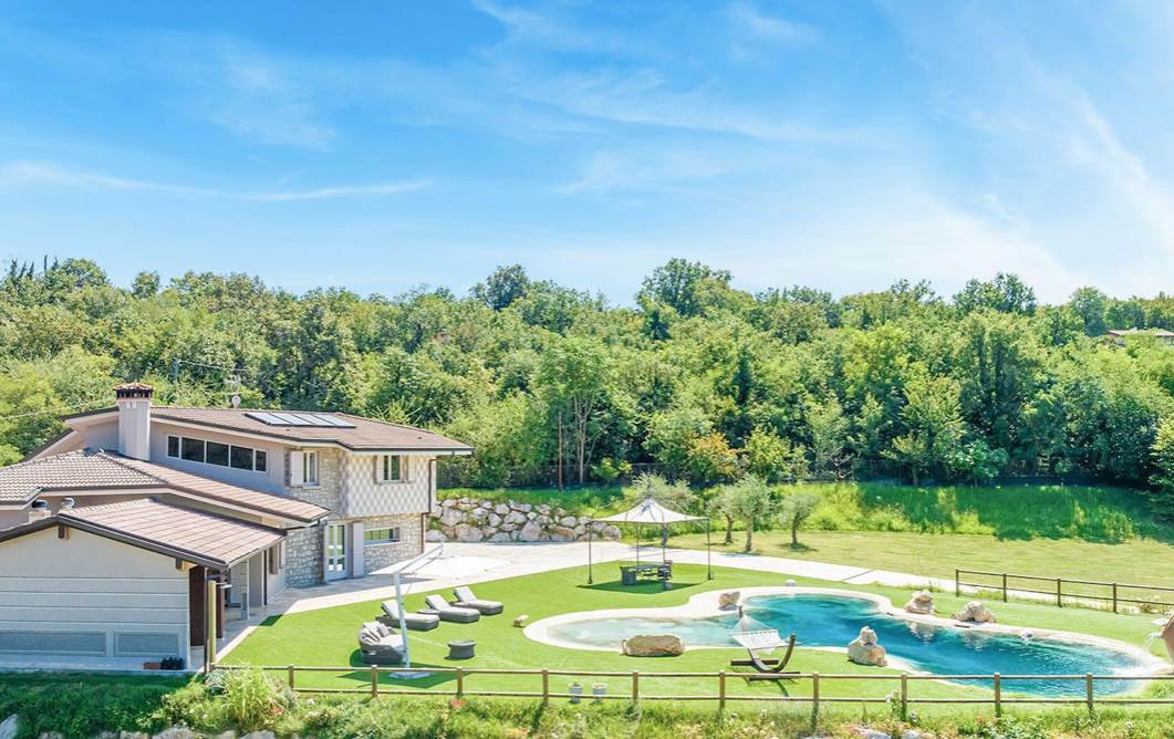 **Esterni:** Il giardino privato offre un’ottima opportunità per godere di momenti di relax all’aria aperta con una grande piscina e un’area barbecue. La villa è circondata da un contesto naturale incantevole, perfetto per passeggiate e attività all’aria aperta.
